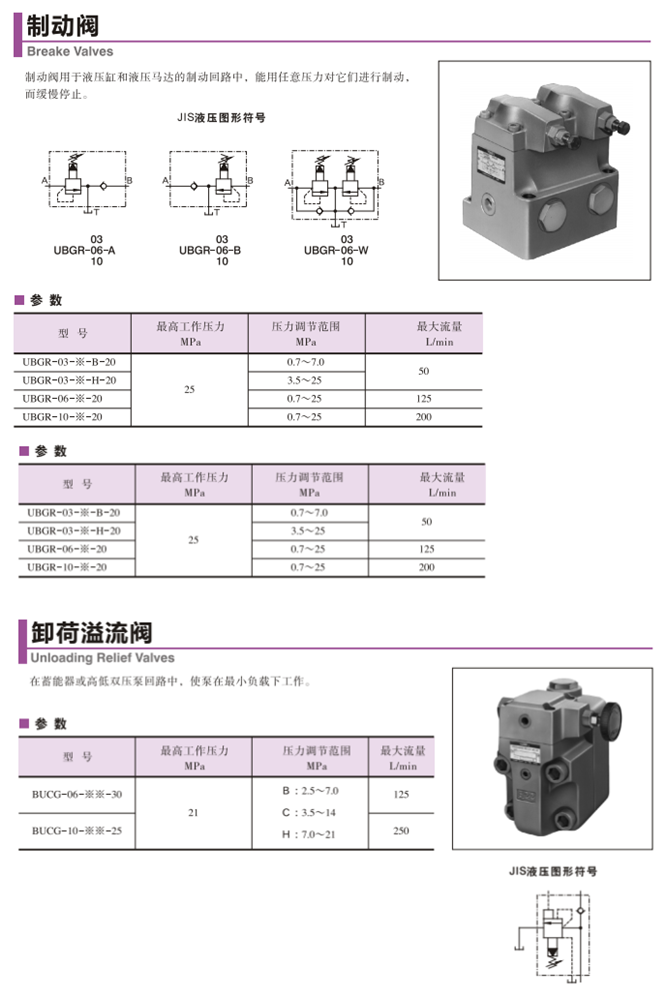一号彩票UBGR-03,UBGR-06,UBGR-010系列日本油研制动阀用于液压缸和液压马达的制动回路中,能用任意压力对它们进行制动,而缓慢停止。
